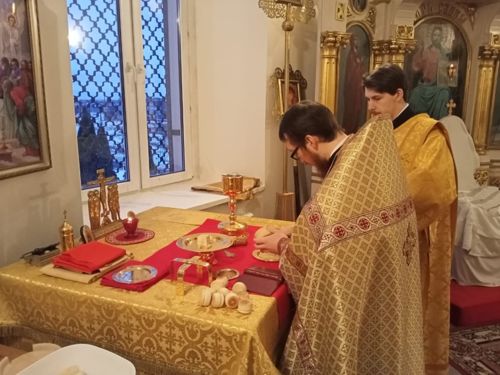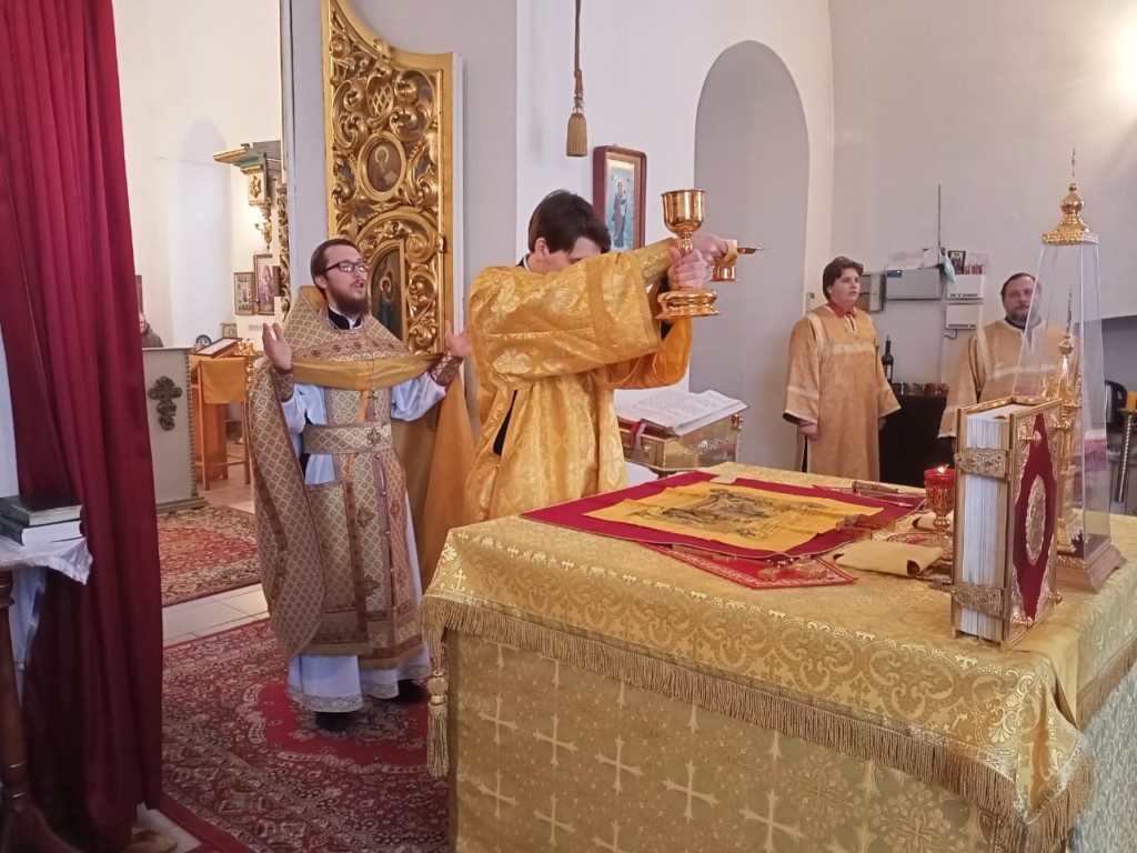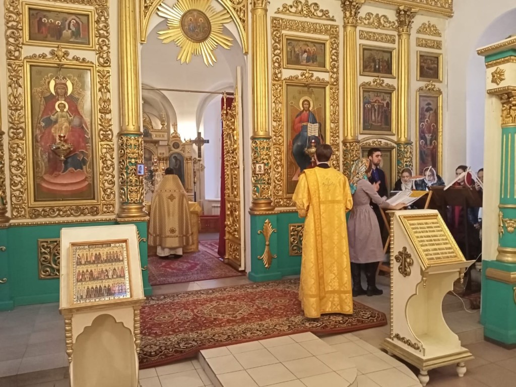 На Божественной литургии, на сугубой ектении, были вознесены молитвенные прошения в связи с угрозой распространения коронавирусной инфекции.